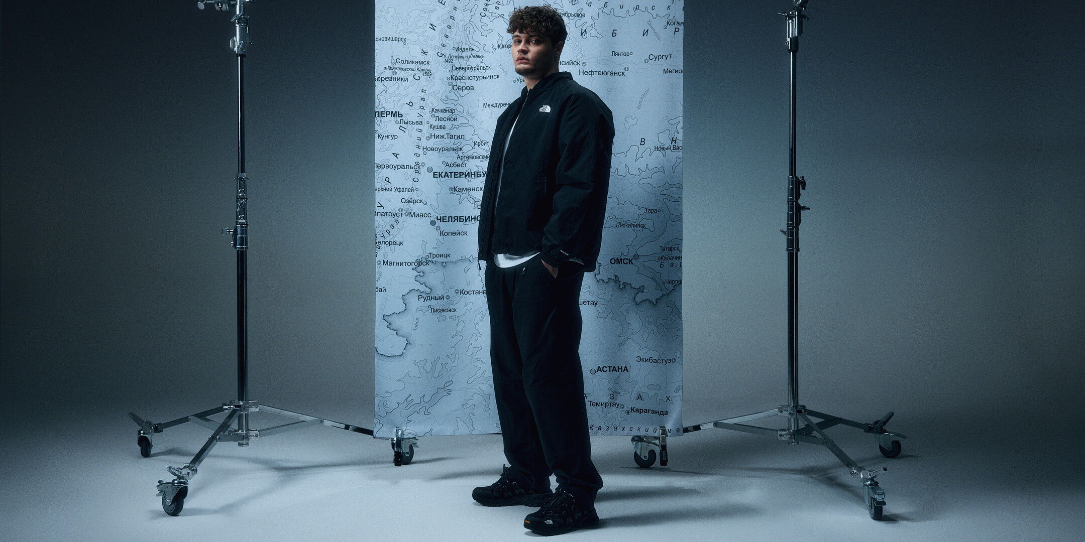 The inspiration for the shoot was a map of Siberia, a region that largely defined the character of SEEMEE and revealed the philosophy of The North Face brand and technology. The SEEMEE bomber is already available on the Hiker website and in stores.